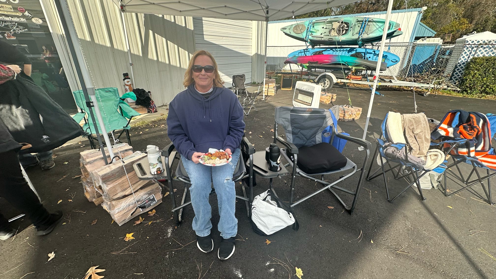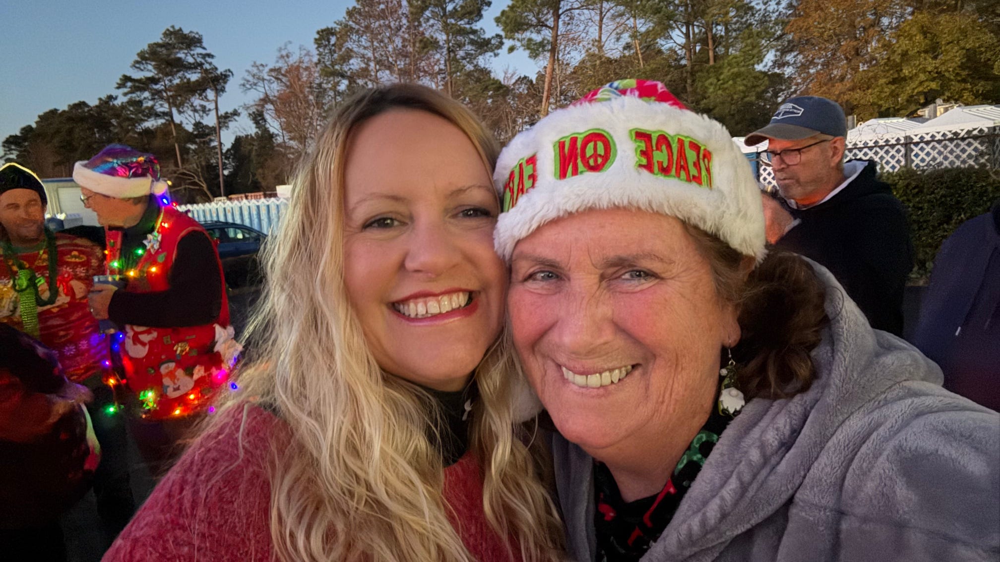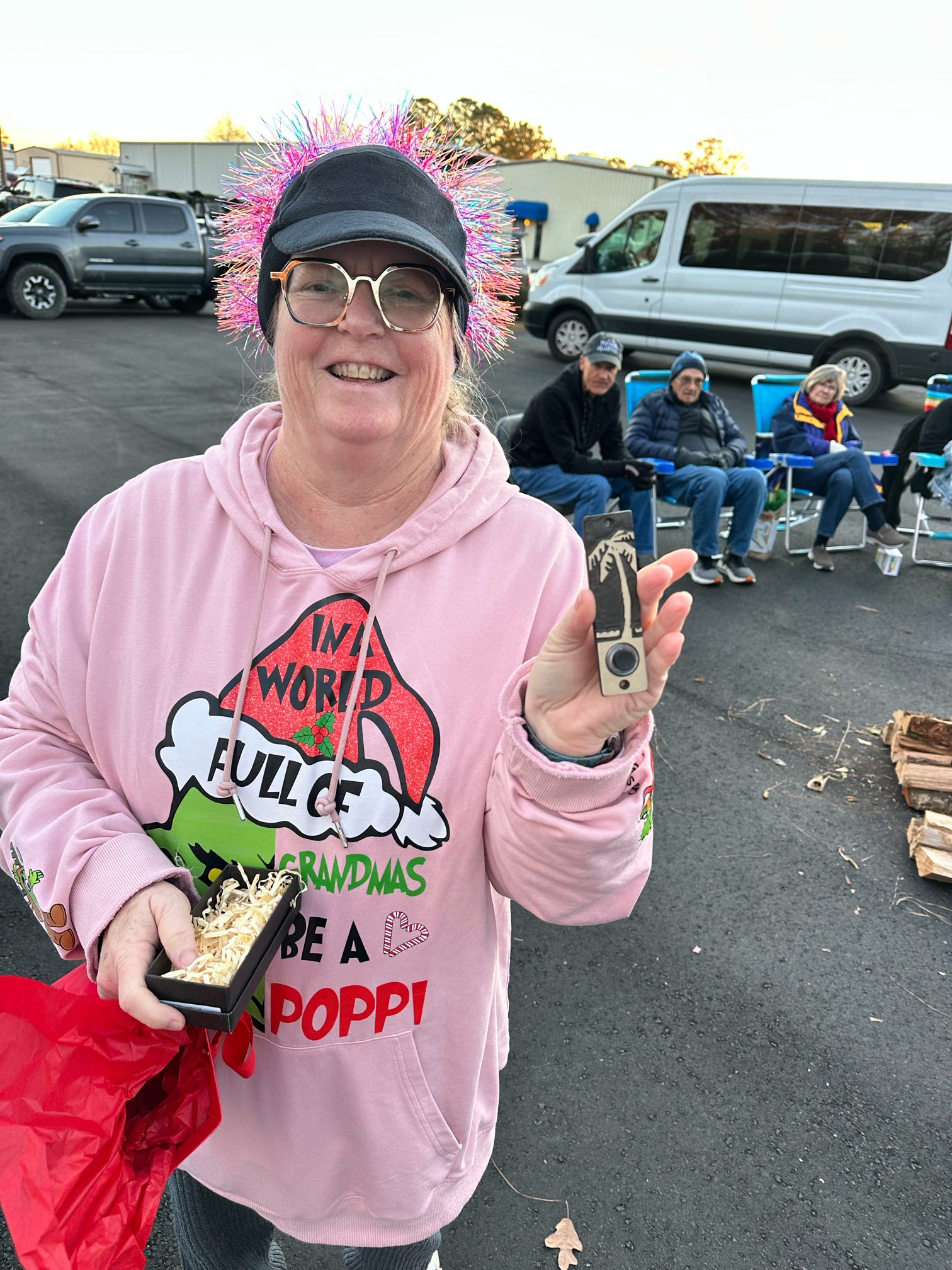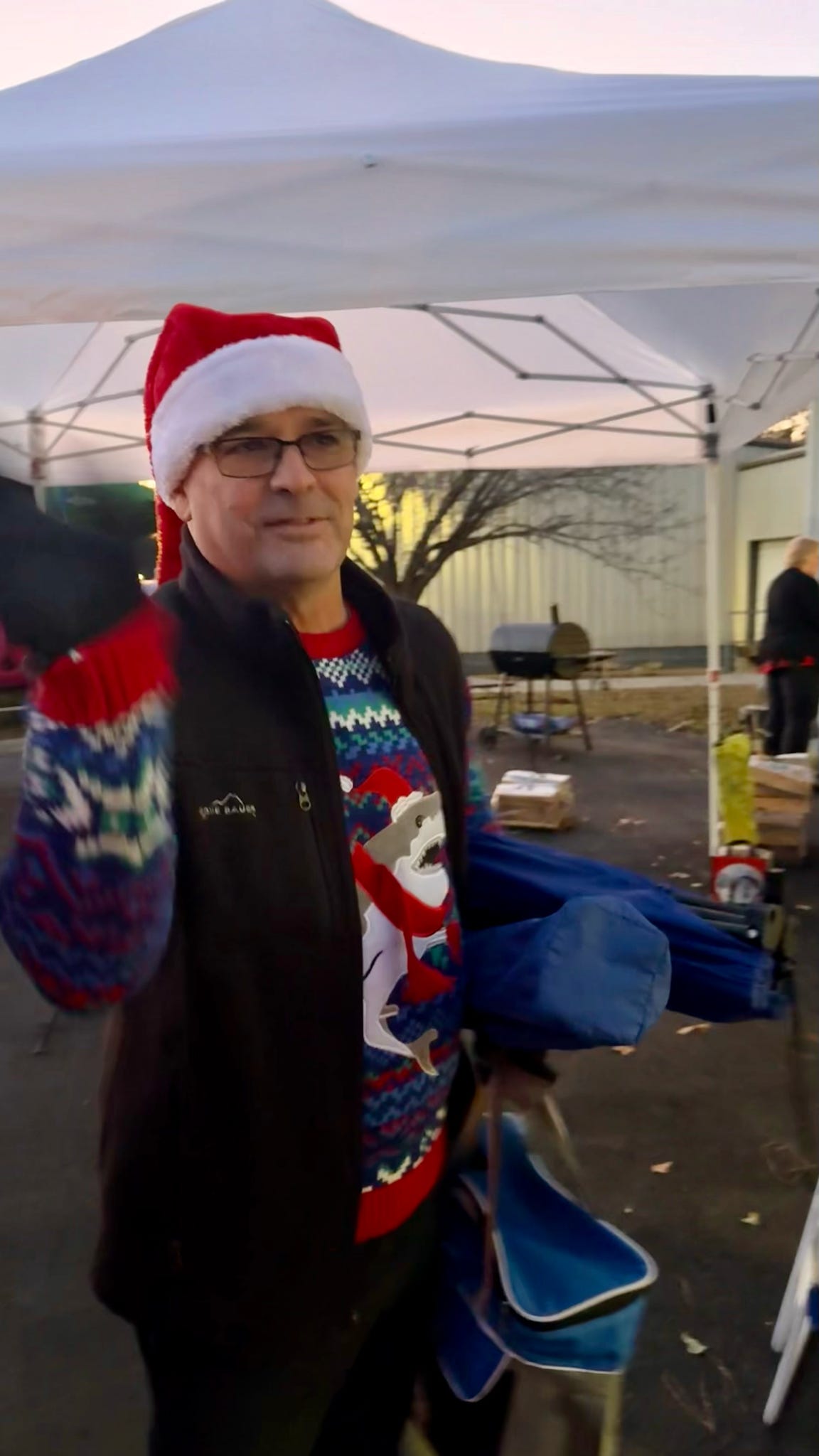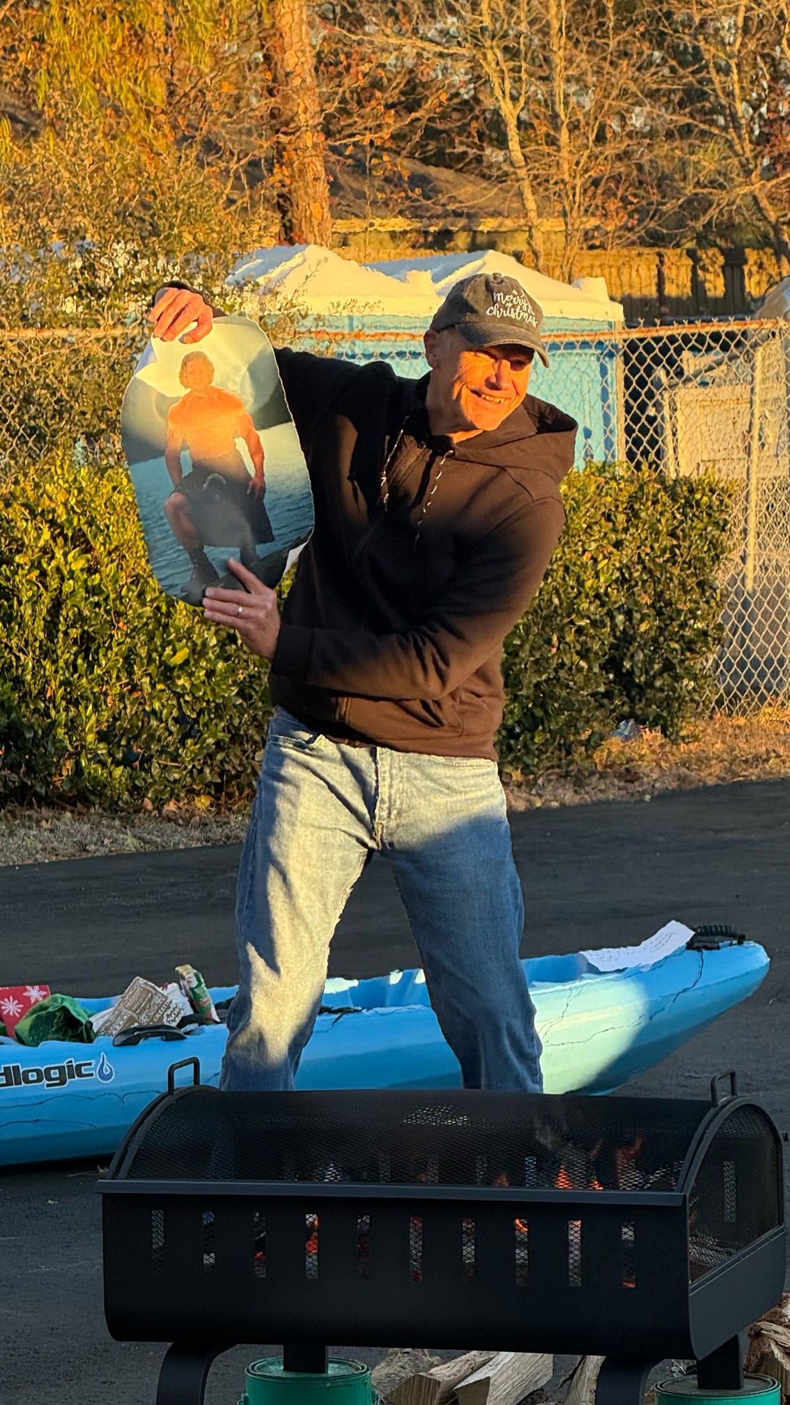 The evening kicked off with hugs, laughter, and warm spirits. Then came the tradition: one by one, presents were dropped onto our kayak present sleigh—Santa would be jealous.